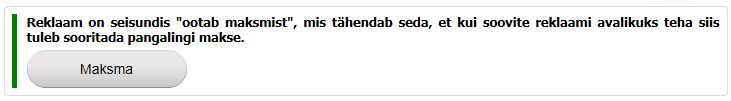 Pärast seda, kui reklaami info sisestatud tuleb reklaami avalikustamiseks sooritada makse valides selleks sobiva võimaliku internetipõhise makseviisi.