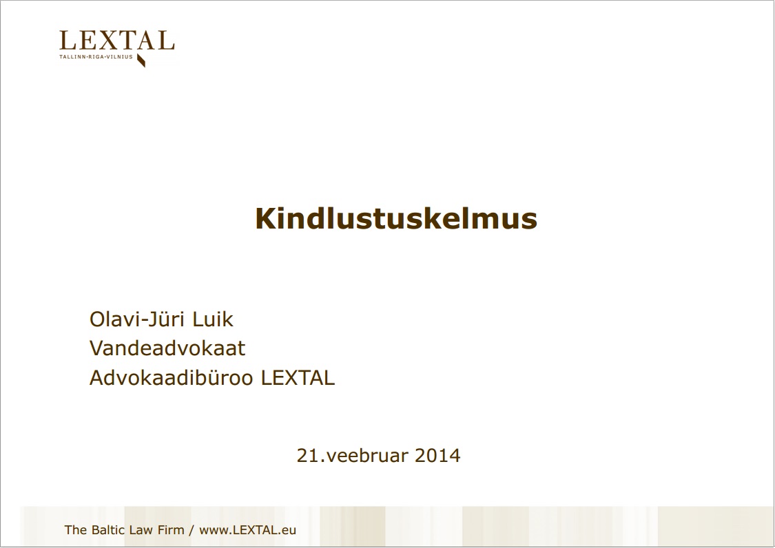 11.30 – 12.00 "KINDLUSTUSKELMUS" OLAVI-JÜRI LUIK, LEXTAL