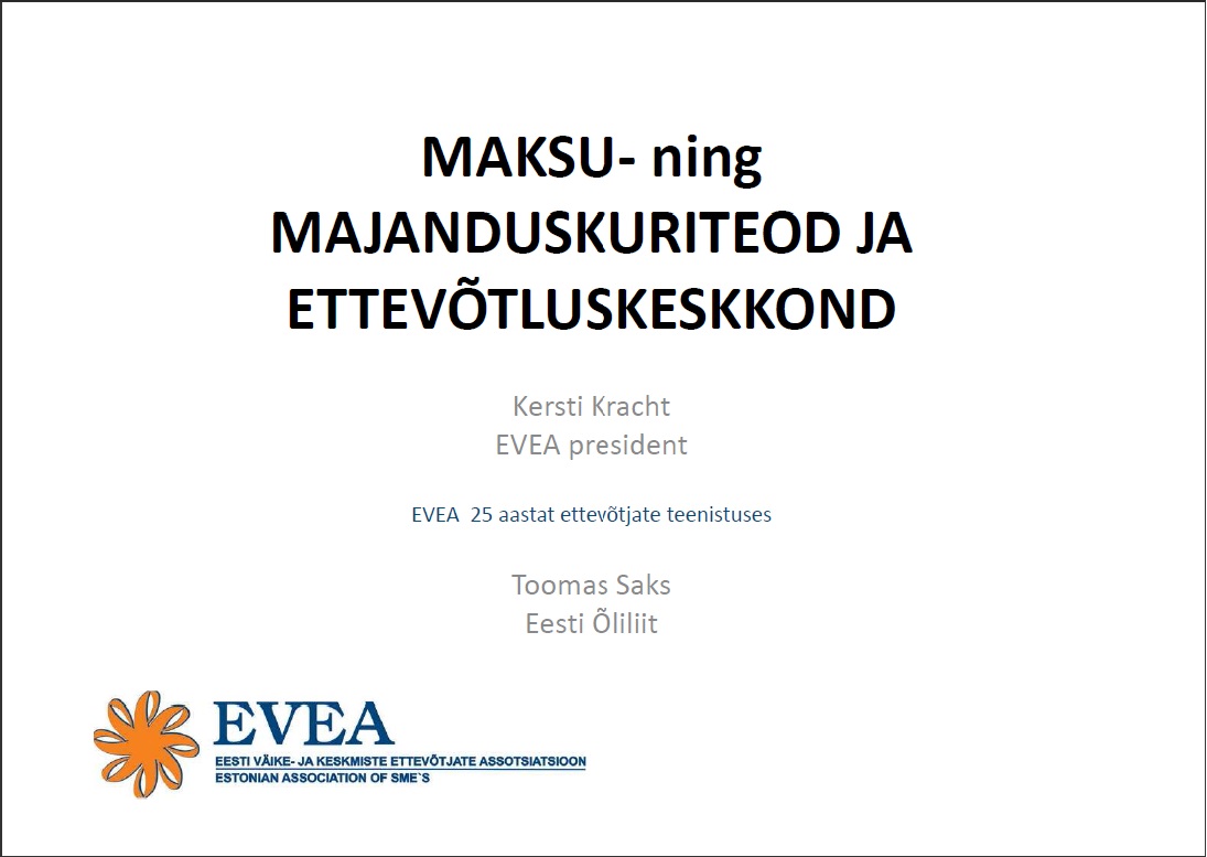 12.30 – 13.00 "MAKSU- ning MAJANDUSKURITEOD JA ETTEVÕTLUSKESKKOND"