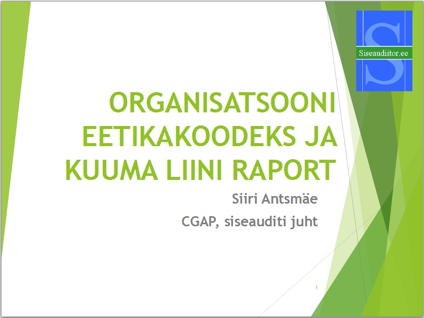12.00 - 12.30 „ORGANISATSIOONI EETIKAKOODEKS JA KUUMA LIINI RAPORT"
